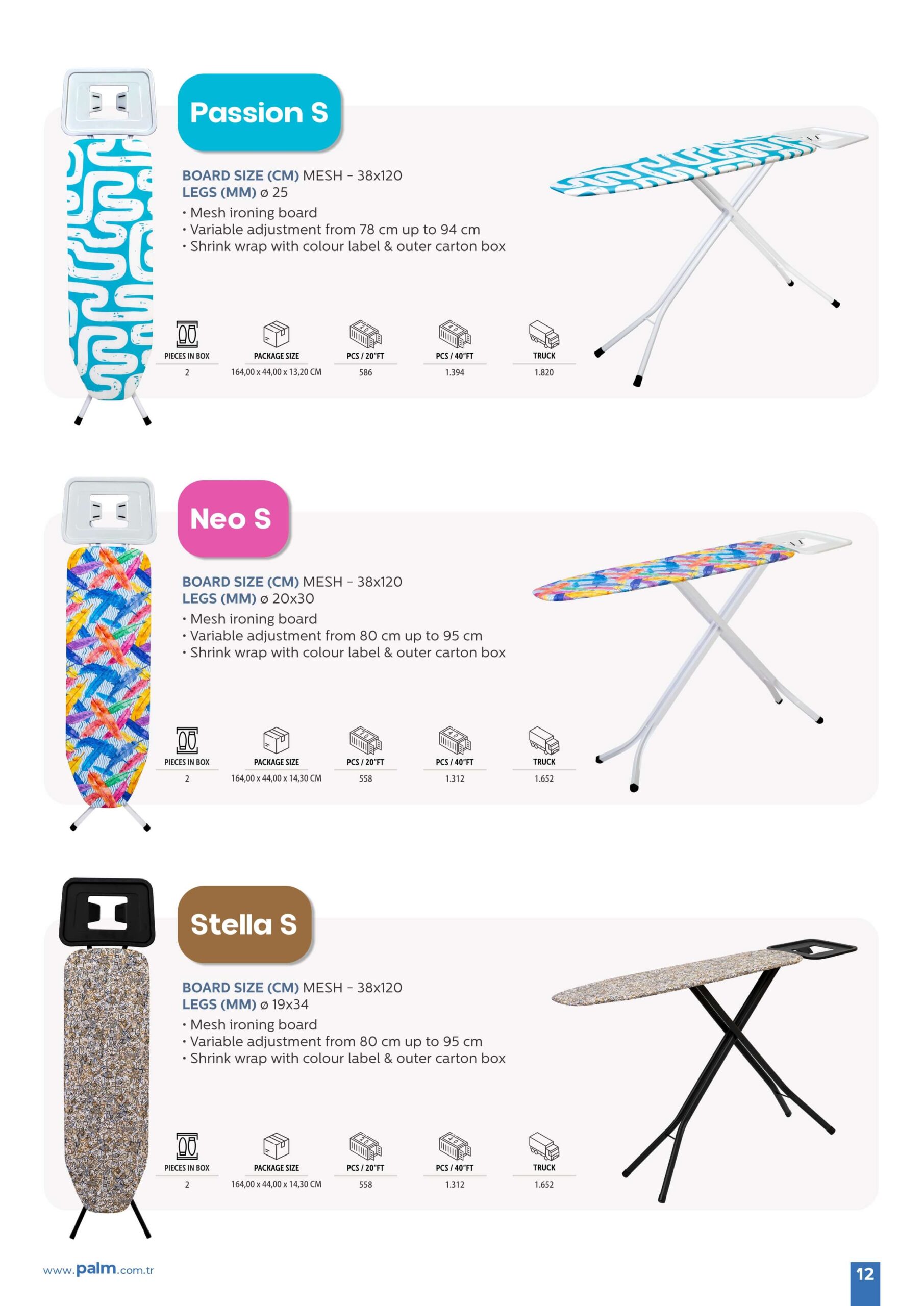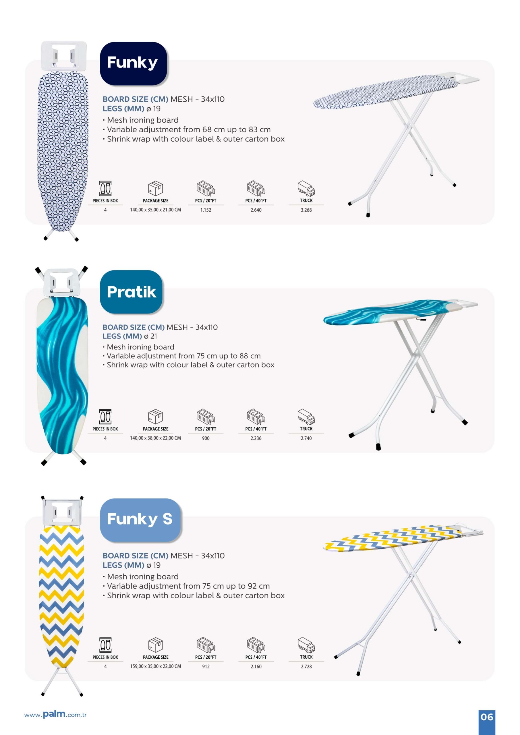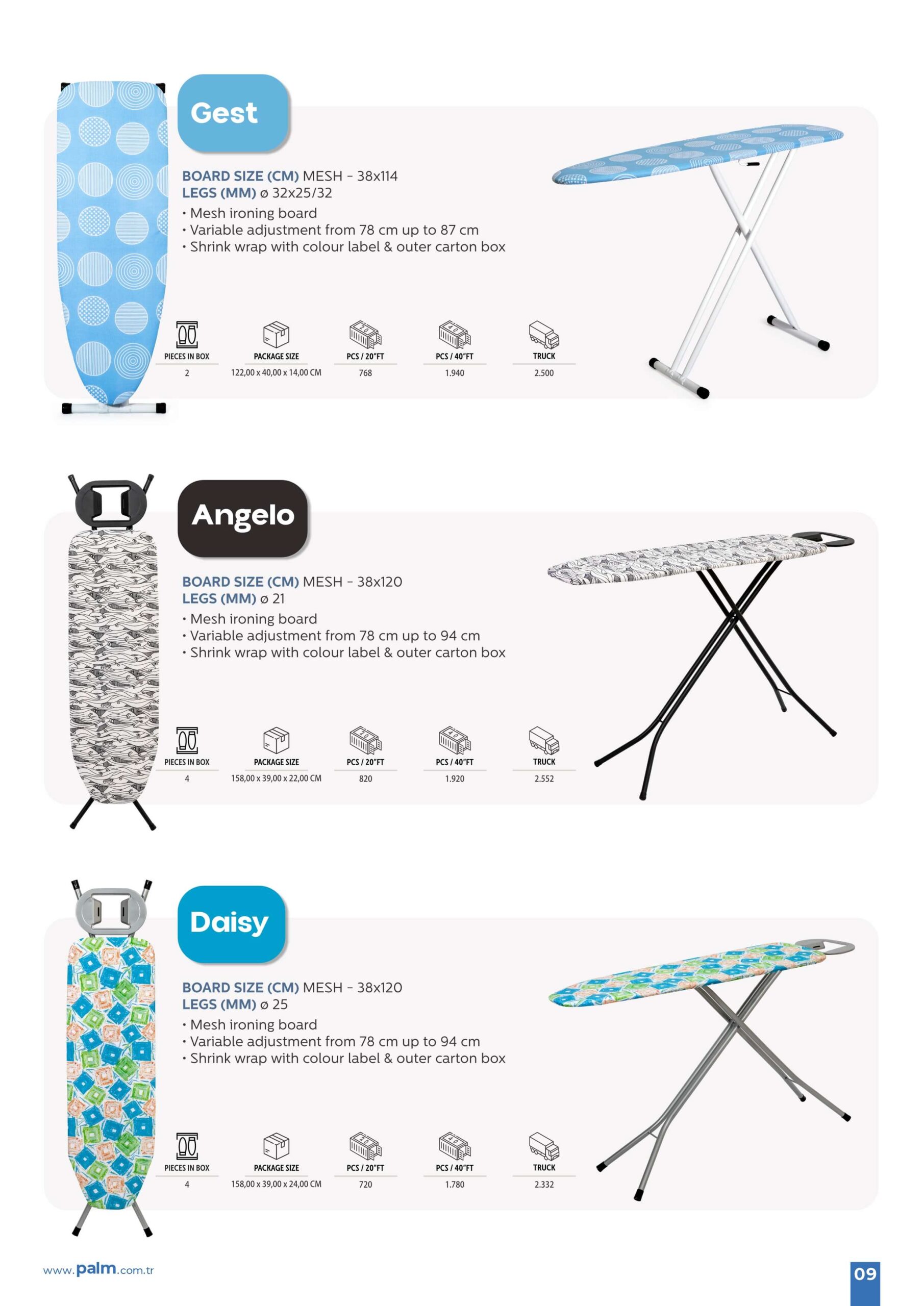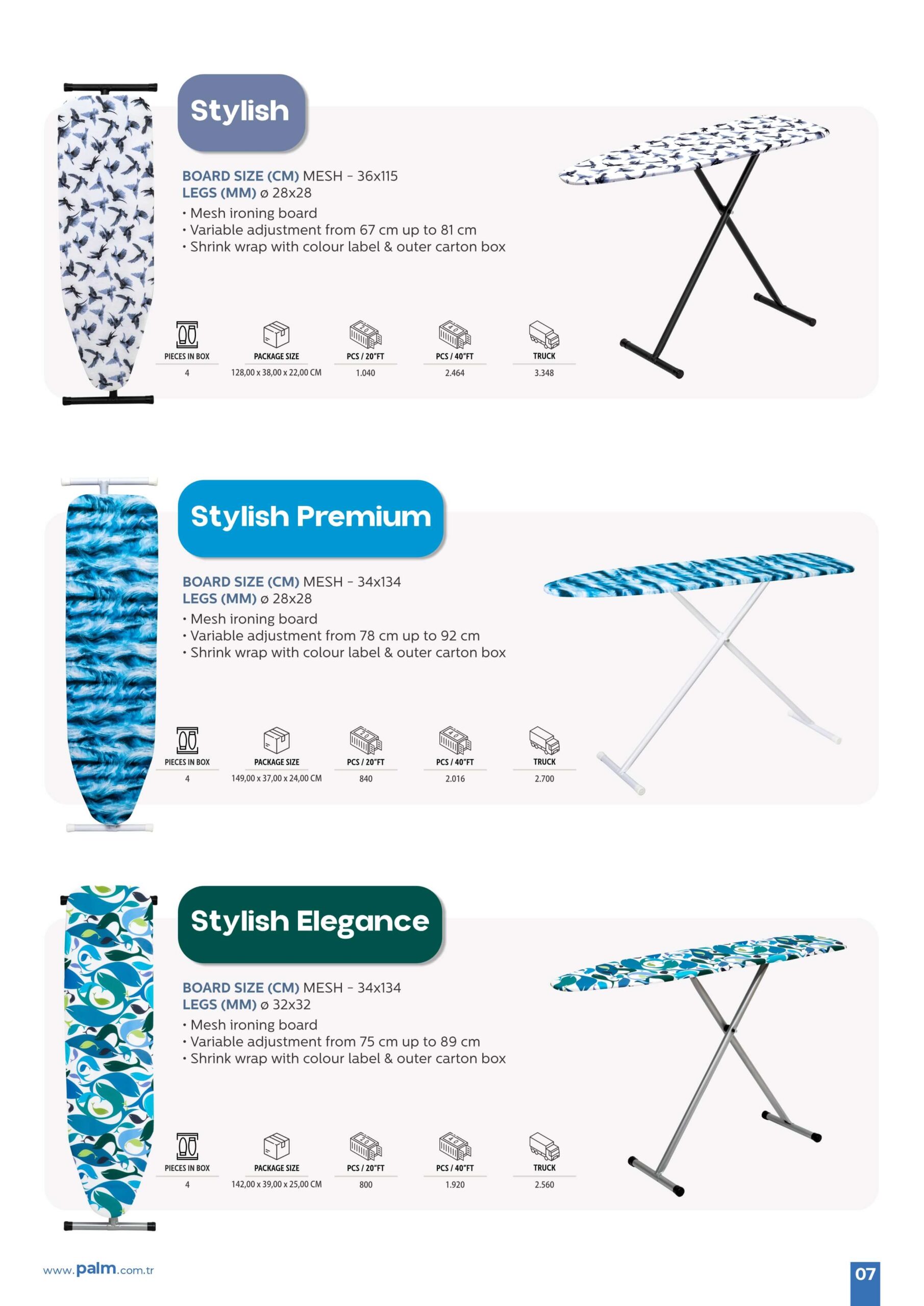 Ev dekorasyonunuza uyum sağlayan şık ütü masalarımızla yaşam alanınızı güzelleştirin. Kişisel zevkinize uygun çeşitli renk ve desen seçeneklerinden dilediğinizi seçebilirsiniz.