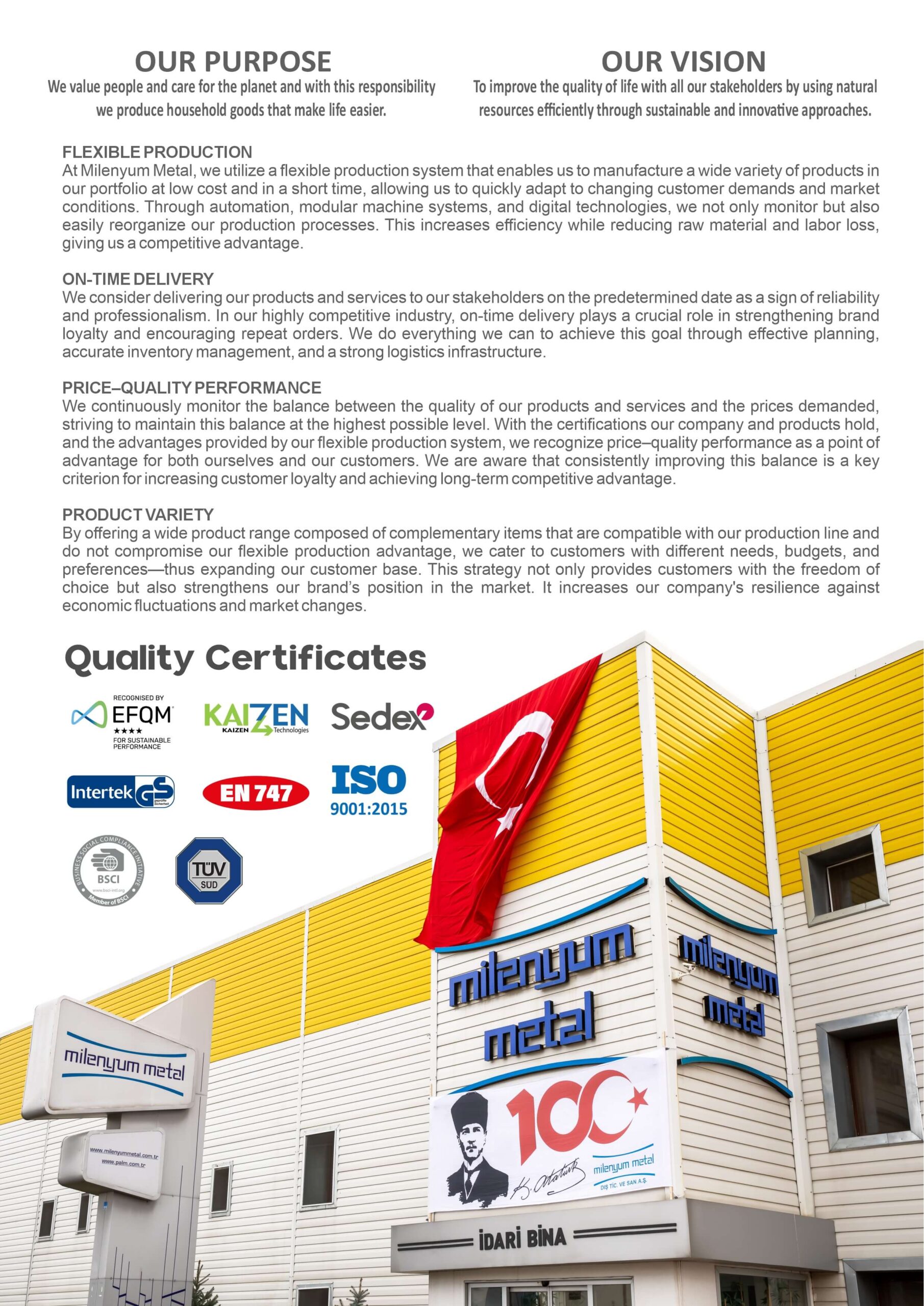 Ütü masalarımız, çevre bilinciyle gerçekleştirilen üretim süreçleri kullanılarak imal edilmektedir. Geri dönüştürülebilir malzemelerin kullanımıyla sürdürülebilir bir üretim anlayışını benimsiyoruz.